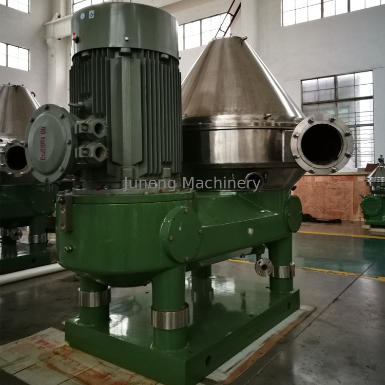 مواد جدا شده به قلب جداکننده یعنی درام وارد می شود.با میدان نیروی گریز از مرکز قوی، ماده از پارتیشن جداسازی متشکل از رشته دیسک عبور میکند، مایع با وزن مخصوص زیاد در امتداد دیواره دیسک به سمت خارج از سوراخ خنثی حرکت میکند، جایی که سرباره سنگین در منطقه رسوب تجمع مییابد، و مواد سنگین فاز به سمت پمپ گریز از مرکز به سمت بالا جریان می یابد.مایع با وزن مخصوص کوچک در امتداد دیواره دیسک به سمت سوراخ خنثی حرکت می کند و به پمپ گریز از مرکز پایینی همگرا می شود.فازهای سبک و سنگین به ترتیب توسط پمپ گریز از مرکز پایین و پمپ گریز از مرکز فوقانی خروجی می شوند.سرباره سنگین به طور منظم تخلیه می شود.با تولید مداوم